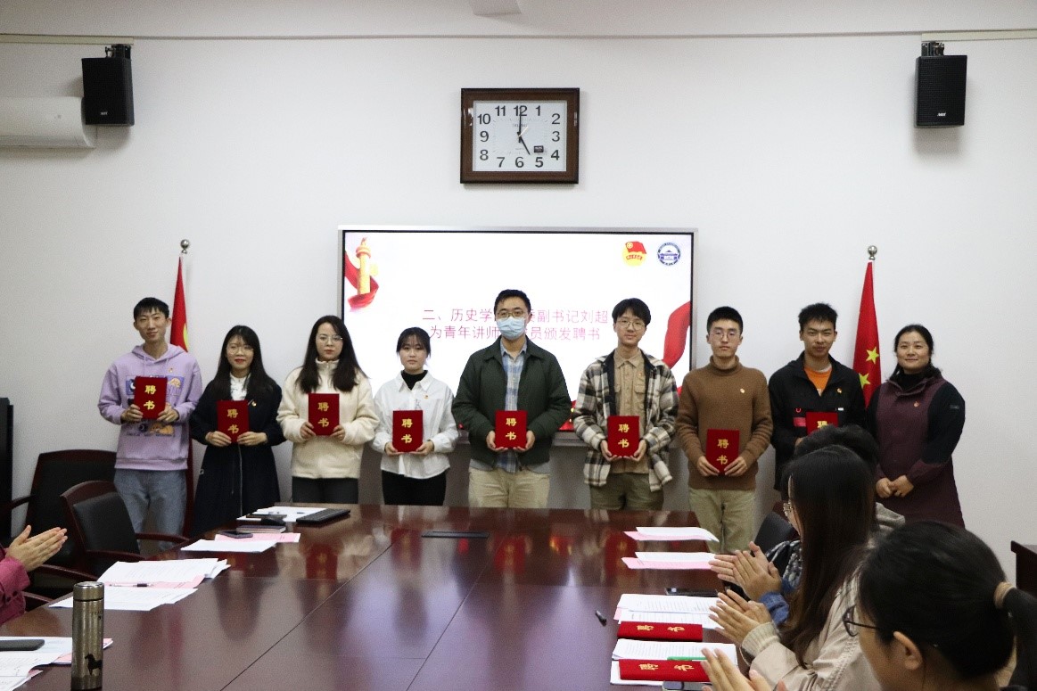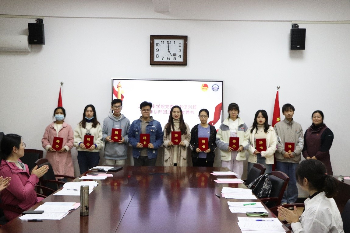 院党委副书记刘超老师为新任青年讲师团成员颁发聘书。
